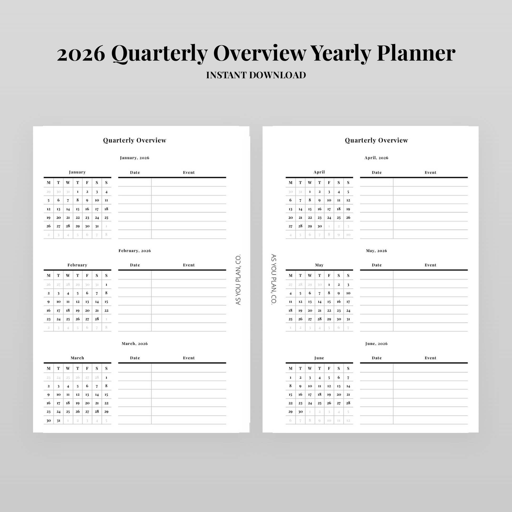 • Quarterly pages for all of 2026